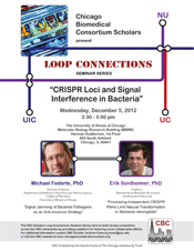 The second CBC Scholars ‘Loop Connections’ Seminar was held on the UIC campus on December 5, 2012. The seminar’s theme was “CRISPR loci and signal interference in bacteria.” Over 70 students, postdocs and faculty from all three CBC campuses attended talks by Dr. Michael Federle from UIC and Dr. Erik Sontheimer from NU.