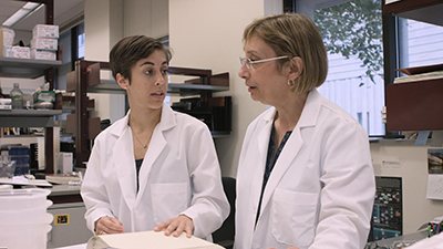 Photo: UChicago graduate student Taylor Feehley with Cathryn Nagler, PhD (right). Credit: Dan Harris, Argonne National Laboratory.
